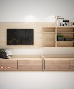 Với kiểu dáng màu sắc nhẹ nhàng, rất phù hợp với không gian căn nhà chật chội trở nên có điểm nhấn hơn. Ngoài ra tủ tivi gỗ ép công nghiệp còn có ngăn tủ để người dùng có thể dễ dàng cất những món đồ vào ngăn lưu trữ một cách gọn gàng hơn.